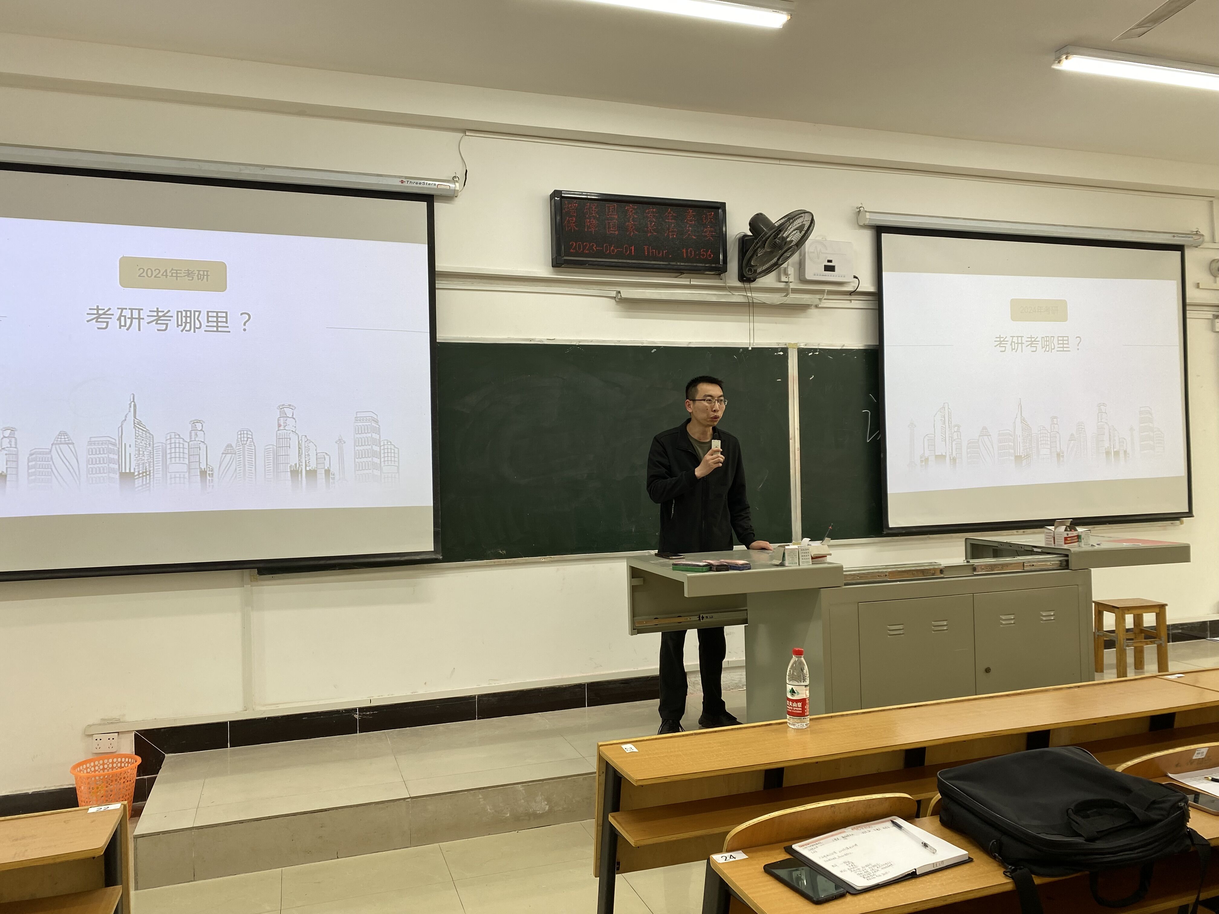 最后,贺景霖现场调查了同学们的考研情况,他鼓励同学们明确目标,坚定信心,有困难及时向学院老师寻求帮助,争取考研成功。