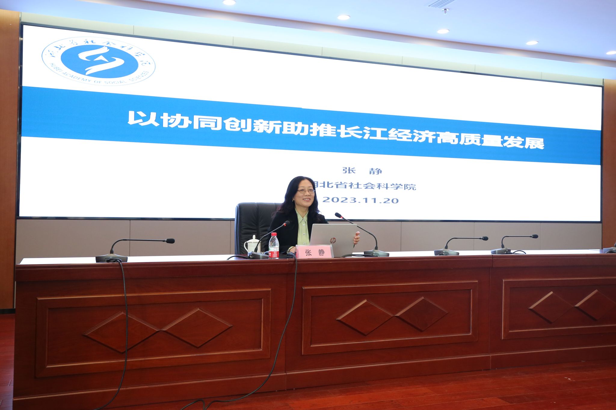 揭牌仪式后,张静以“协同创新助推长江经济带高质量发展”为题,为参会师生带来一场学术盛宴。