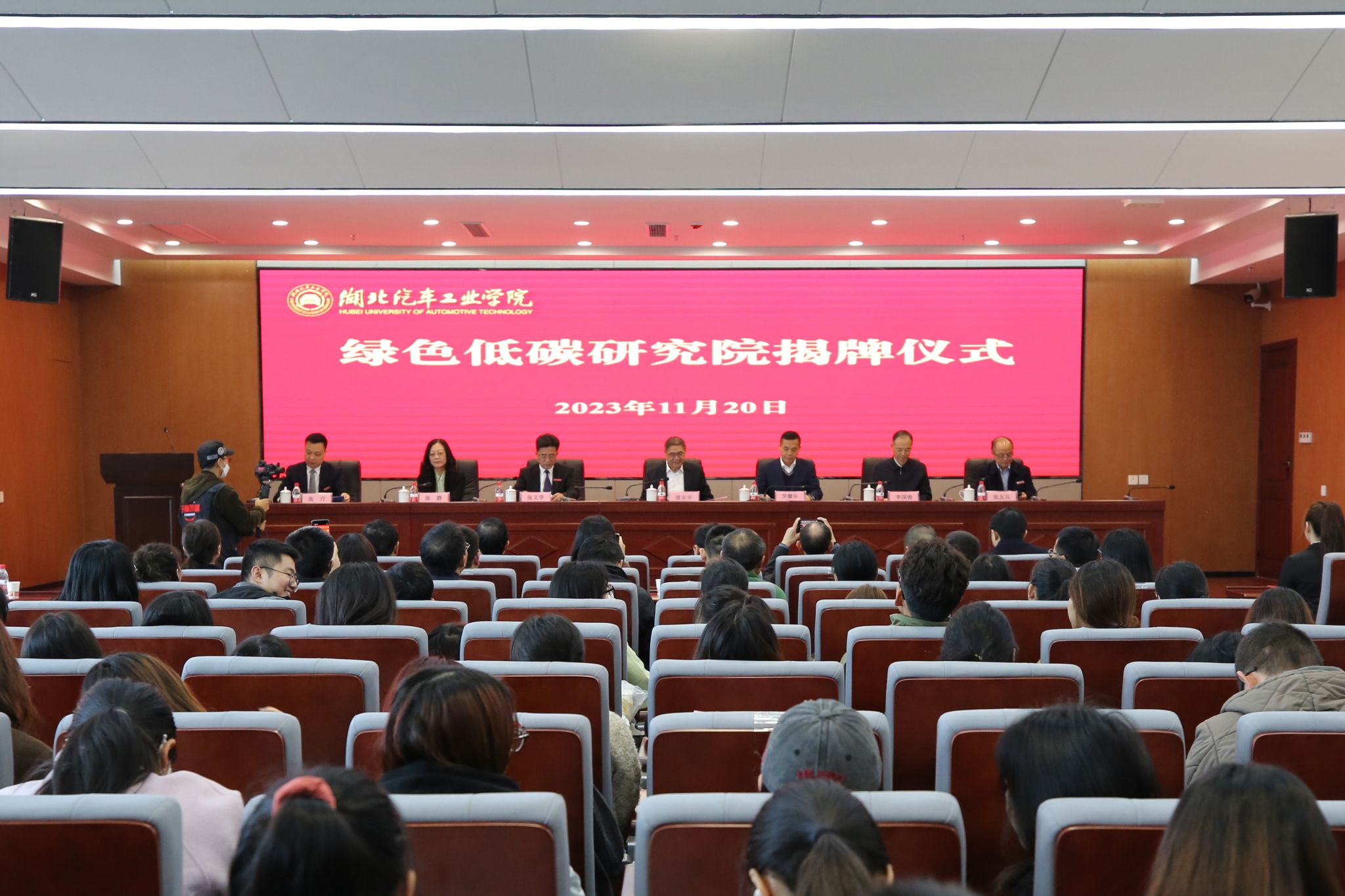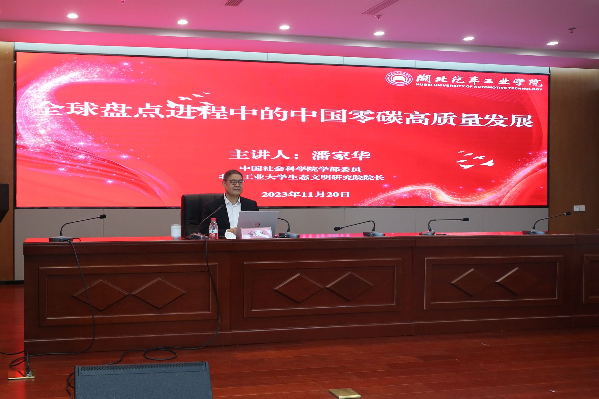11月20日,中国社科院学部委员潘家华,在北京工业大学校长助理、经济管理学院院长李国俊,湖北社科院长江流域经济研究所所长张静陪同下,莅临学校开展学术交流并为学校绿色低碳研究院揭牌,十堰市人民政府副市长罗耀华、校党委书记张文学、副校长张友兵出席揭牌仪式。活动由副校长高刃主持。