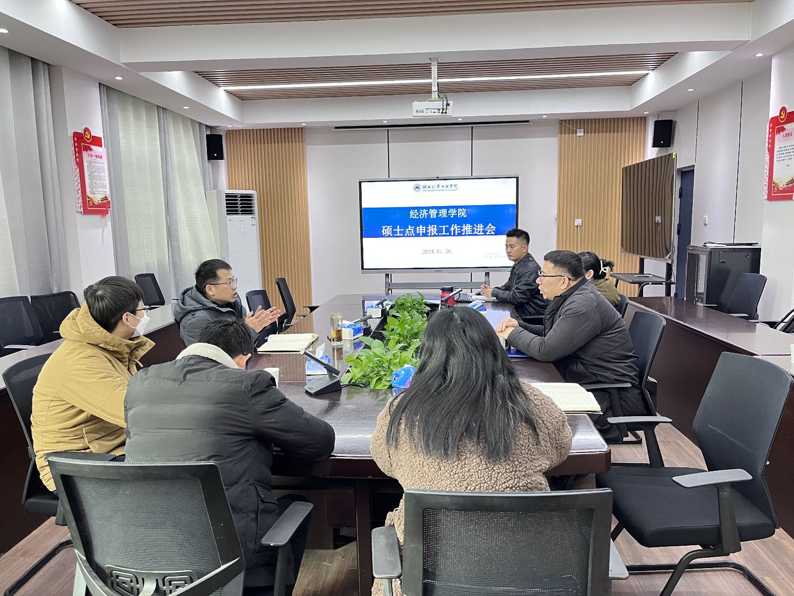 为深入推进新增硕士学位授权点申报工作,促进学校学科高质量发展,1月20日下午,经济管理学院组织召开了硕士学位点申报工作推进会。院长殷旅江、拟新增硕士点负责人李雪涛、高金玲及参与申报工作的全体教师参加了会议。会议由经济管理学院副院长胡姜主持。