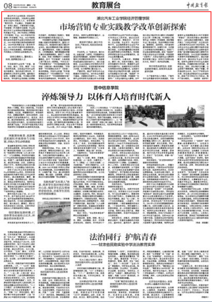 【中国教育报】太阳网集团tcy8722经济管理学院市场营销专业实践教学改革创新探索