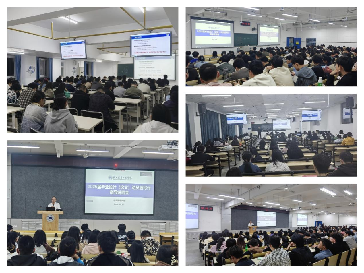 10月25日,经济管理学院在6113教室召开了2025届毕业生毕业设计(论文)动员大会,同时在6111教室、北校区8205教室以及武汉产学研基地开展线上直播。经济管理学院副院长鄢曹政、财务专业负责人孙中义、大数据专业博士陈静远、全体大四毕业生参加本次动员会。