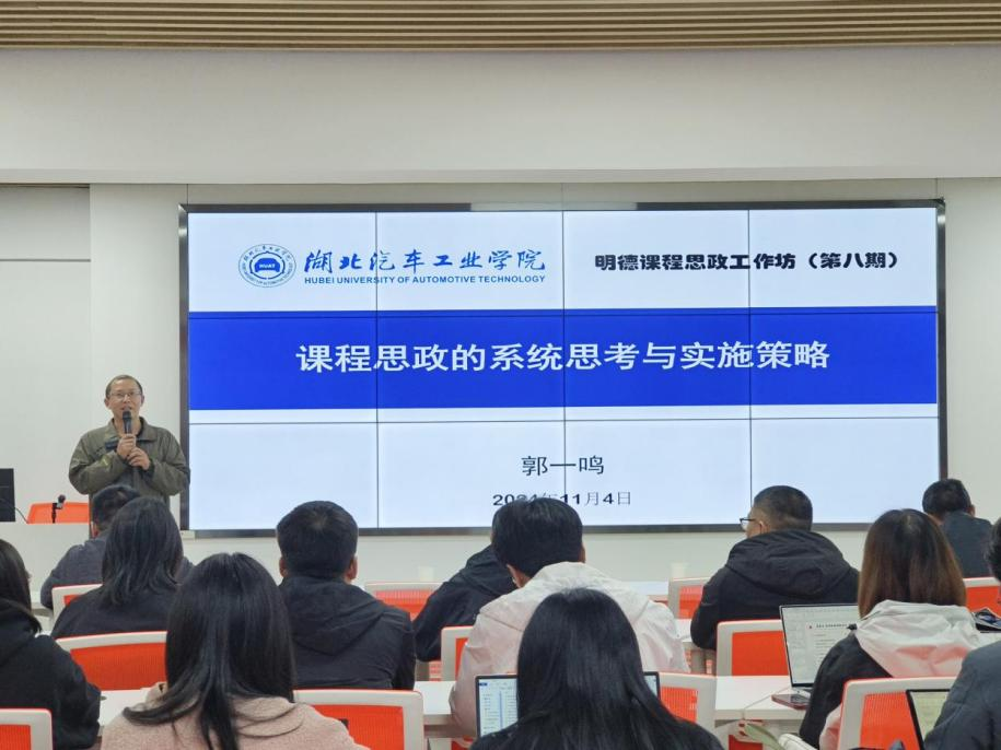 郭一鸣以“课程思政的系统思考与实施策略”为主题,从课程思政的三重境界(专业思政、教师思政、课程思政)、课程思政的具体表现形式及典型特征、如何开展专业思政、如何开展教师思政、如何挖掘课程思政元素、如何实现专业教育和思政教育的有机融合、如何实施课程思政教学评价等方面,为与会教师呈现了一堂精彩纷呈的课程思政专题讲座。郭一鸣还阐述了课程思政与一流课程建设、专业认证、教学竞赛的辩证关系,提出数智化时代教师要将人工智能赋能教育教学。