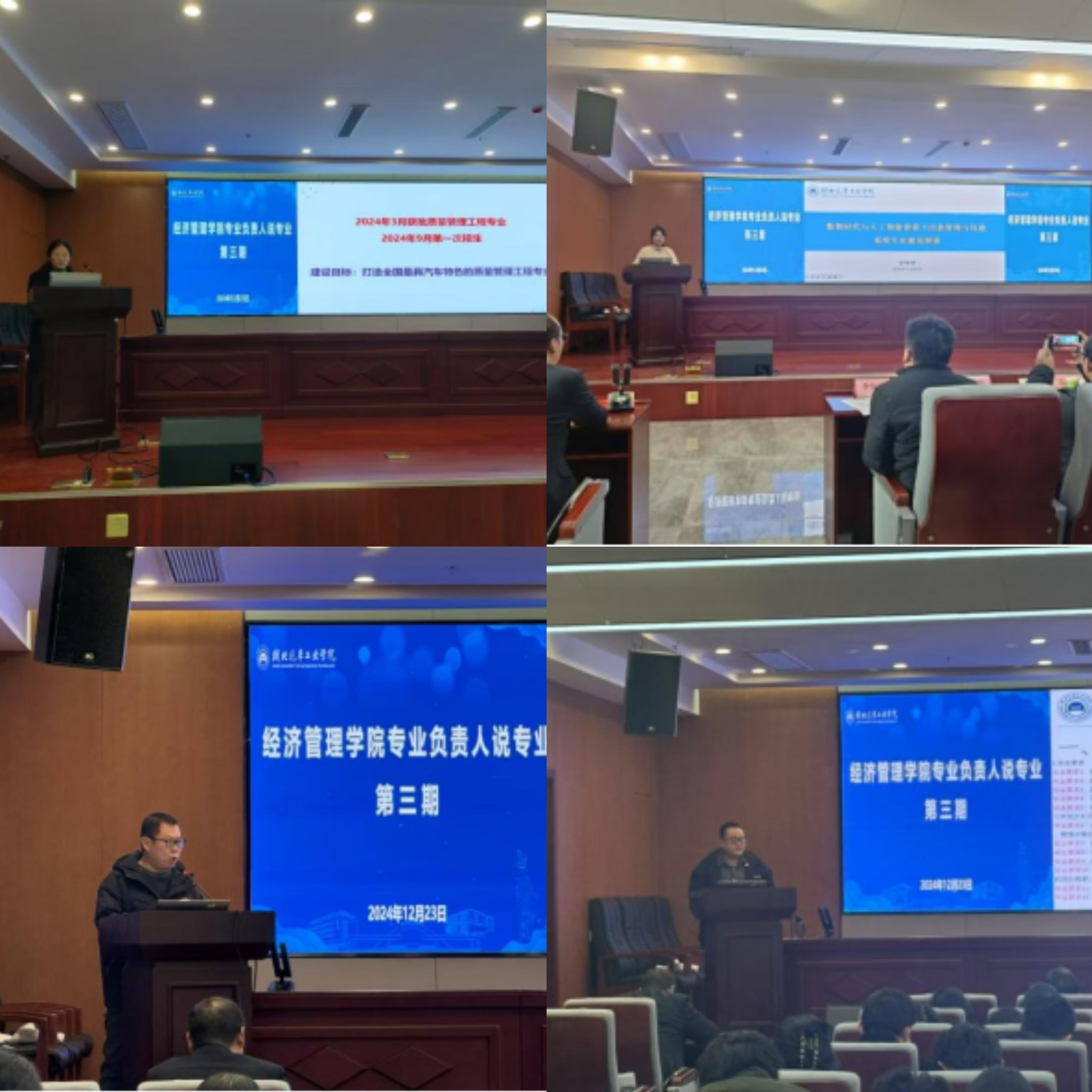 2024年12月23日下午,经济管理学院在产教大楼三楼报告厅成功举办第三期“专业负责人说专业”活动,这也是2024年经济管理学院 “专业负责人说专业”的收官之作。学校党委常委、副校长张红霞,本科教学督导组副组长宋萍萍教授、督导杨立君教授、孔焱清教授,教师发展中心郭一鸣教授等五位专家应邀参会,经济管理学院领导班子、全体教师及相关专业的学生代表150余人参加活动,副院长鄢曹政主持活动。