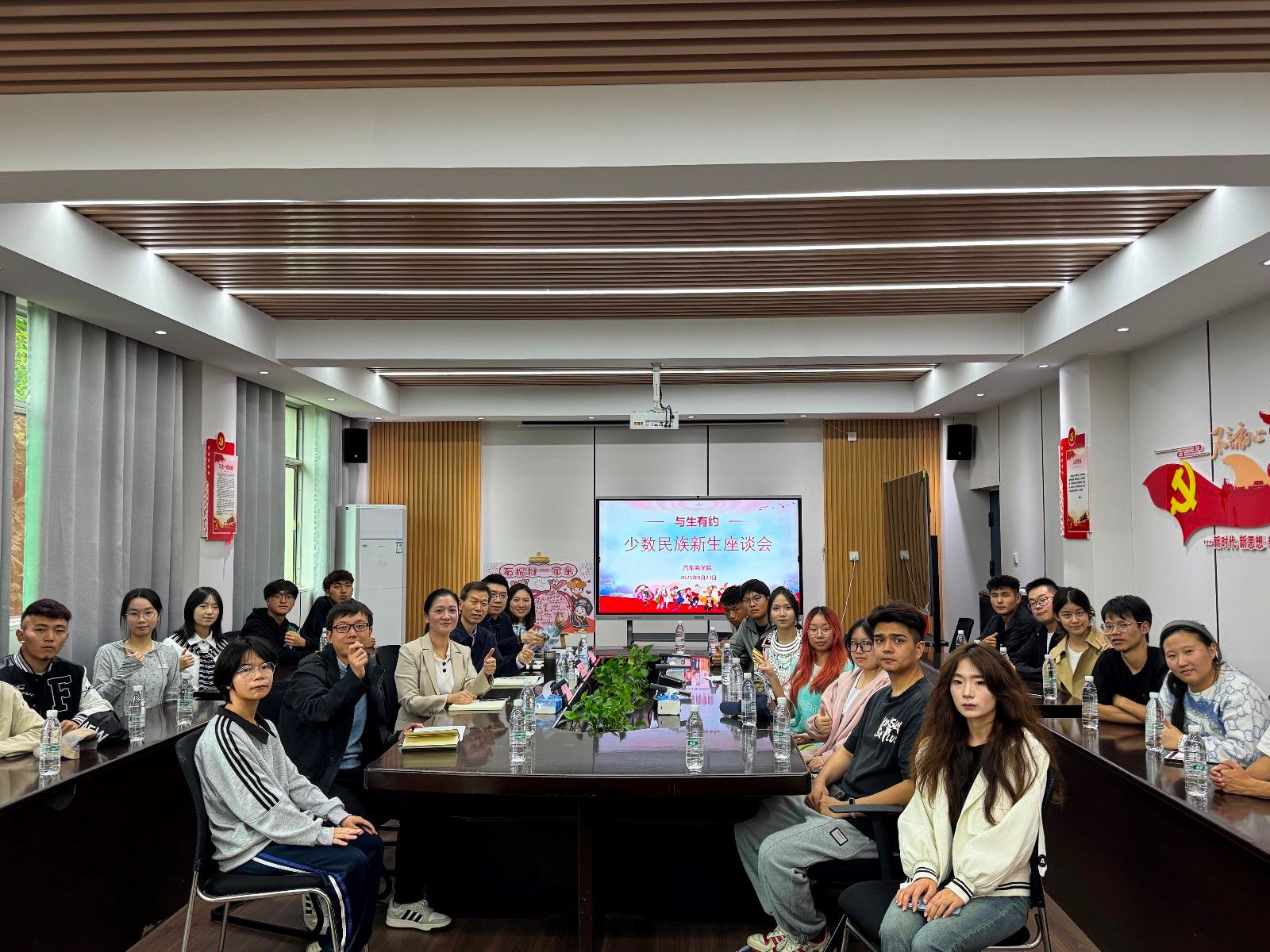 座谈会上,新生代表旅游251班土家族学生谢欣岚以一声乡音问候“尼查”(意为“你好”)瞬间点燃现场温情,财务254班苗族学生林璇结合自身经历与感悟,倡议同学们“守护民族根脉,照亮行业未来”。