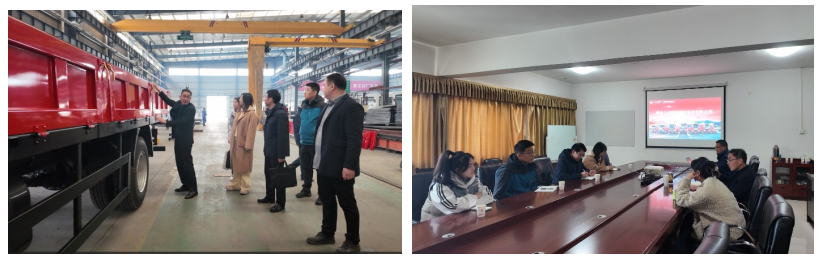公司总经理张自力热情接待并陪同参观生产厂区,介绍了专用车制造全流程,并重点展示最新一代专用车的核心产品特点,充分彰显产品理念与技术实力。