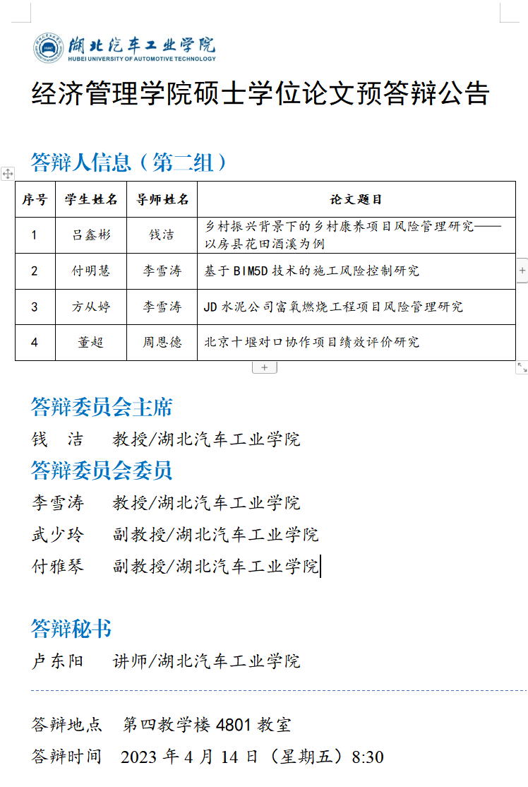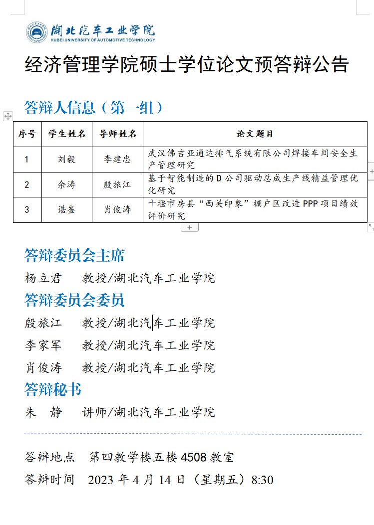 2023上半年经管学院硕士学位论文预答辩公告(一)