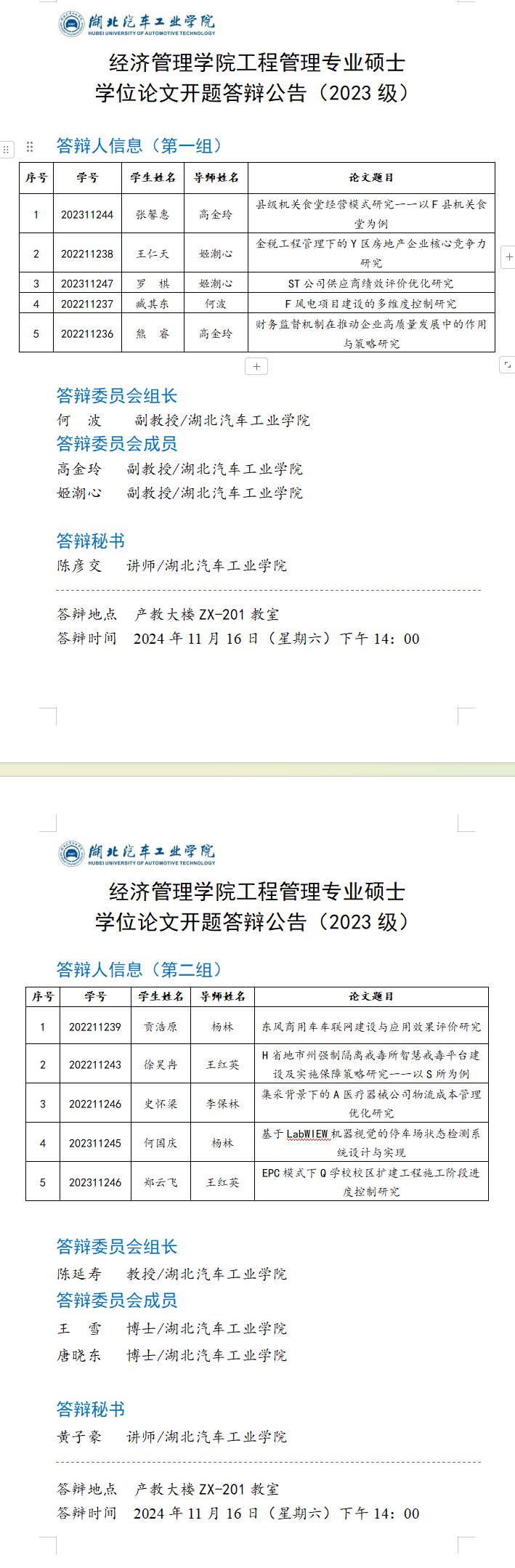 2023级工程管理硕士学位论文开题答辩公告(二)