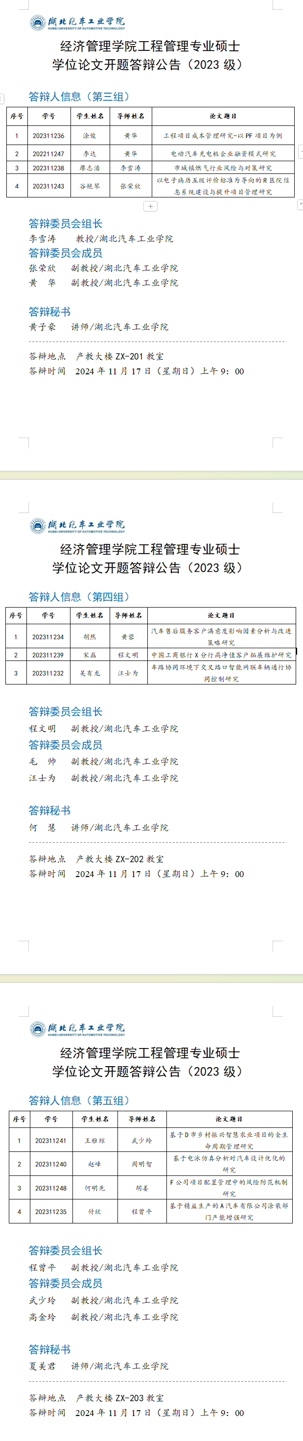 2023级工程管理硕士学位论文开题答辩公告 (一)