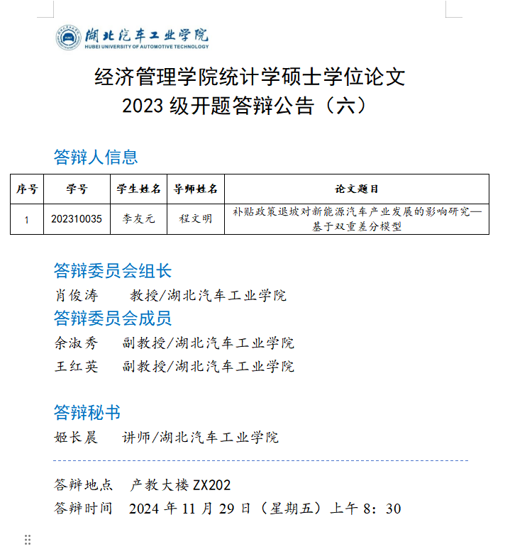 统计学硕士学位论文2023级开题答辩公告(六)