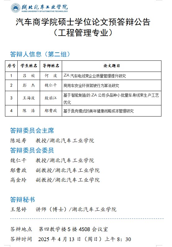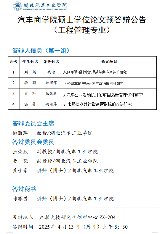 太阳集团网站87222025年上半年硕士学位论文预答辩公告(管理科学与工程专业)