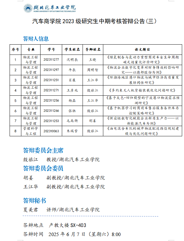 太阳集团网站87222023级研究生中期考核答辩公告(三)