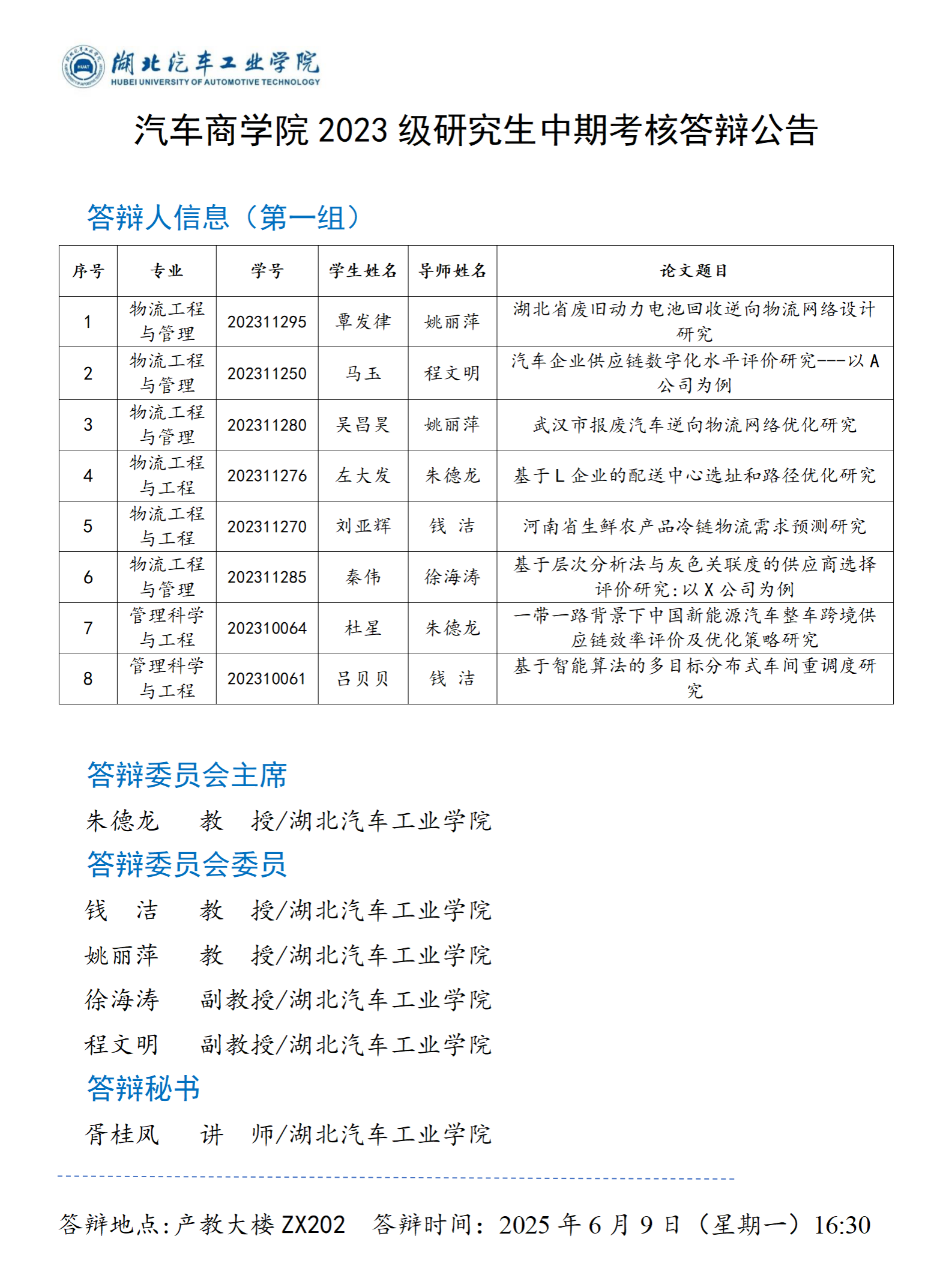 太阳集团网站87222023级研究生中期考核答辩公告(七)