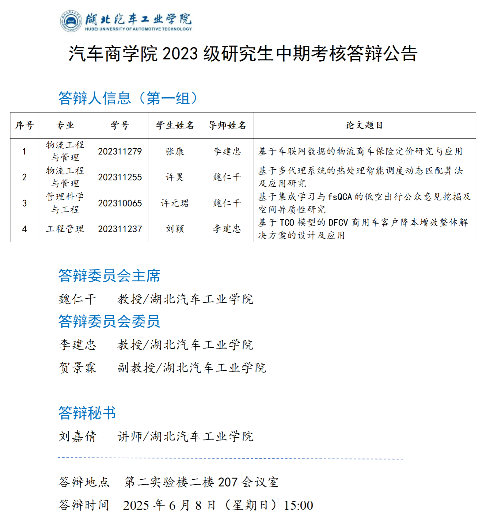 太阳集团网站87222023级研究生中期考核答辩公告(八)