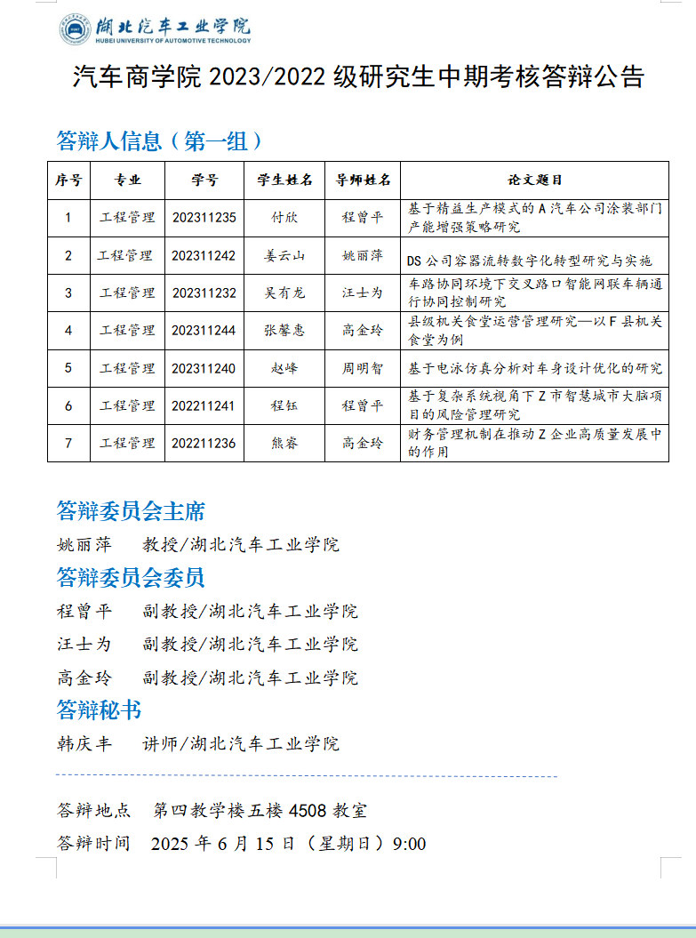 太阳集团网站87222023级研究生中期考核答辩公告(八)