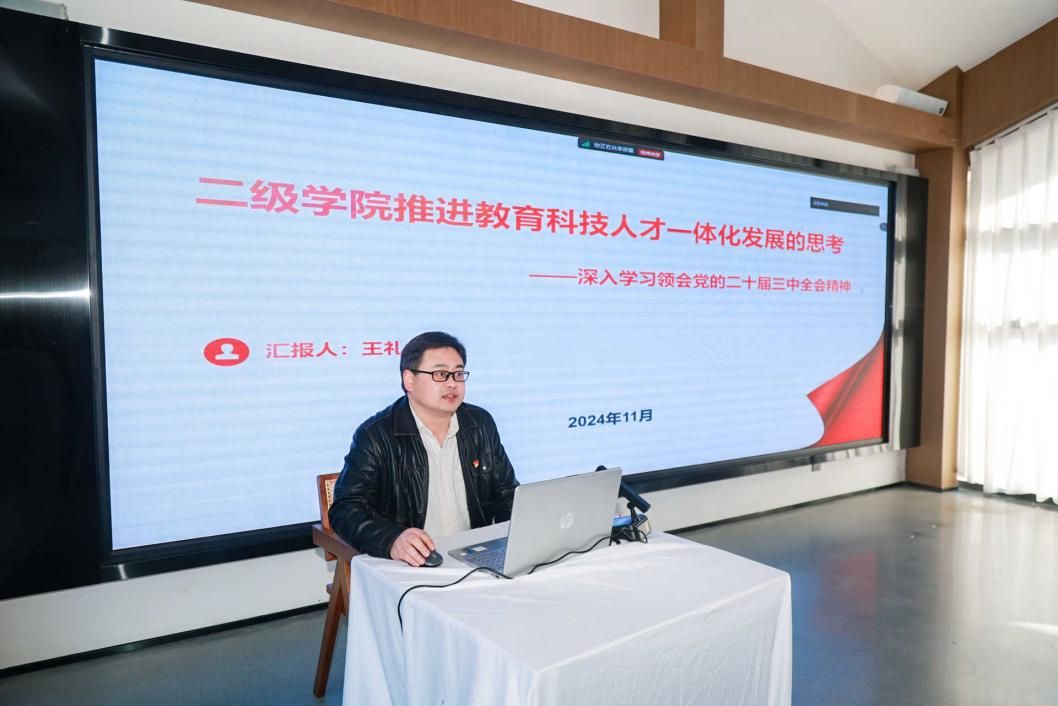 下午,学院分党委书记王礼华结合党的二十届三中全会精神,给全体党员做了题为《二级学院推进教育科技人才一体化发展的思考》微党课。王礼华强调,全体党员要落实立德树人根本任务,坚持以学生为中心,五育并举,培养懂汽车、会管理、善运营的卓越汽车经理人;坚持服务教师成长,打造服务汽车产业和地方经济社会发展的智库高地;坚持党建引领,双融双促,从严管党治党,勇于自我革命,努力建设汽车产业一流经管学院。