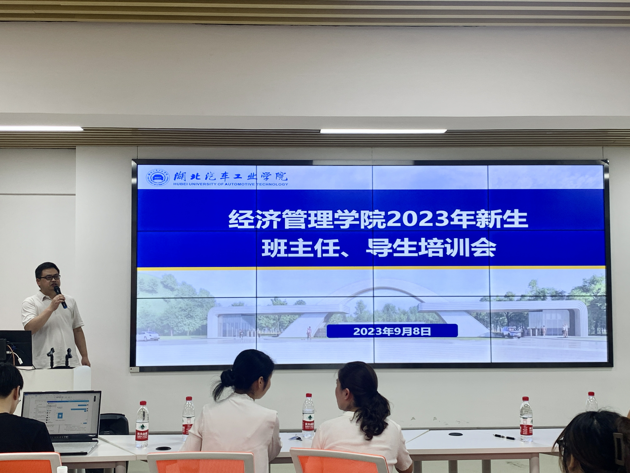 为提升新生班主任综合素质及能力,做好2023级新生迎新工作,9月8日下午,经济管理学院在第五教学楼四楼新商科会议室召开新生班主任、导生培训会。学院分党委书记王礼华、副书记周丹、全体辅导员以及新生班主任、导生出席会议。学工办主任张倩主持会议。