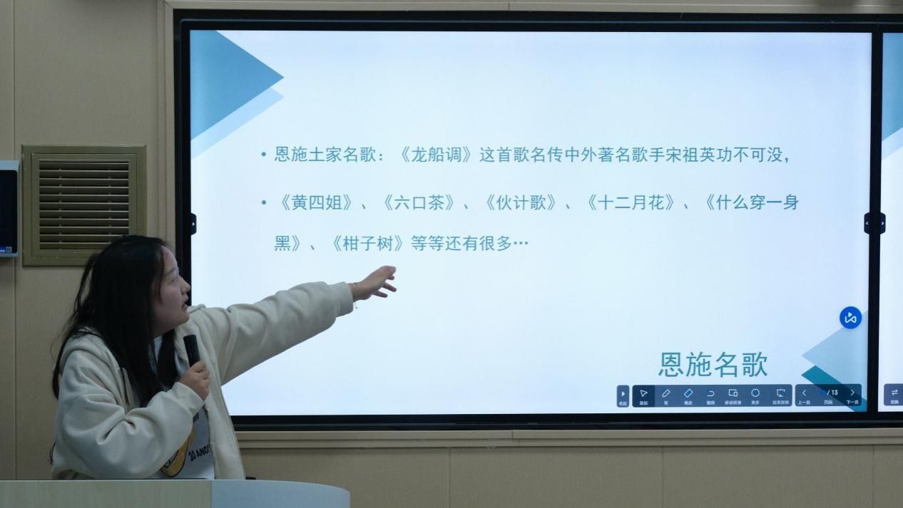 活动在“数字炸弹”“击鼓传花”等暖场小游戏中拉开序幕,在阵阵欢声笑语中,现场气氛愈发活跃。随后进入才艺展示环节,来自西藏的阿布次仁、贡吉白玛分别演唱了藏语歌曲《路》《同伴》,婉转悠扬的歌声让现场听众深深沉醉;来自蒙古族的王家淇带来一支流行舞蹈《Queen Card》,来自藏族的曲吉桑姆带来民族舞《阿萨尔王》,精彩的才艺展示让在场的同学们感受到不同民族文化的魅力和风采。在少数民族代表发言环节,来自土家族的徐赵玲介绍了恩施土家族的服饰文化、饮食文化和特色民俗活动,并分享了自己入校后的学习、生活和未来规划。