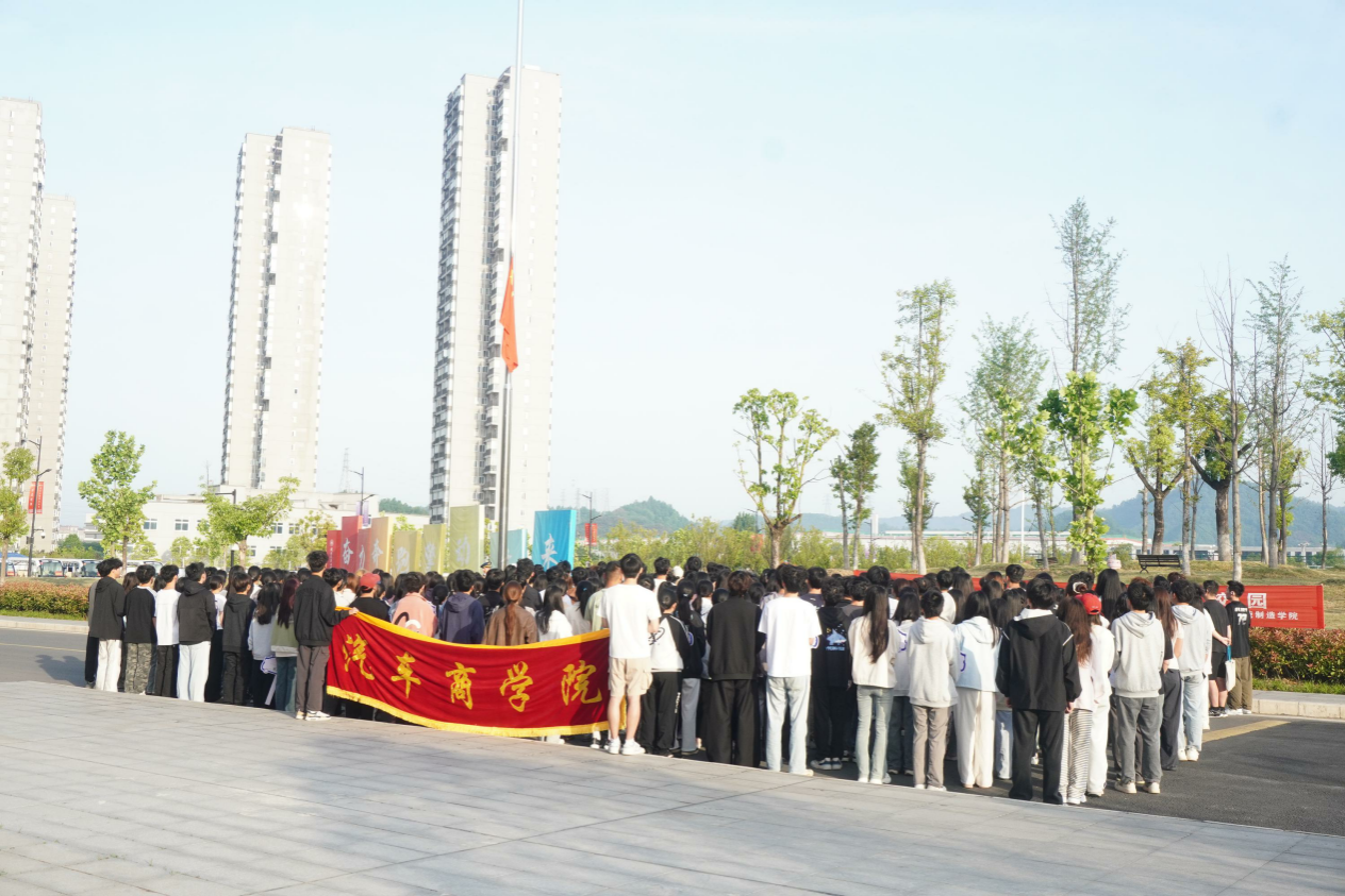 伴随着雄壮的国歌声,五星红旗冉冉升起,全体师生唱国歌,行注目礼。大会开始,由财务243金煜希做国旗下的演讲。她强调劳动精神是中华民族的基石,并结合学校校训,呼吁同学们在新能源汽车、智能驾驶等领域脚踏实地、勇于突破,以实践践行五四先辈的奋斗之志。随后,旅游241韦静思朗诵《中国美,劳动美》,通过描绘教师、农民、环卫工人等劳动者的身影,歌颂他们在平凡岗位上的无私奉献,展现了劳动之美与时代腾飞的紧密联系。