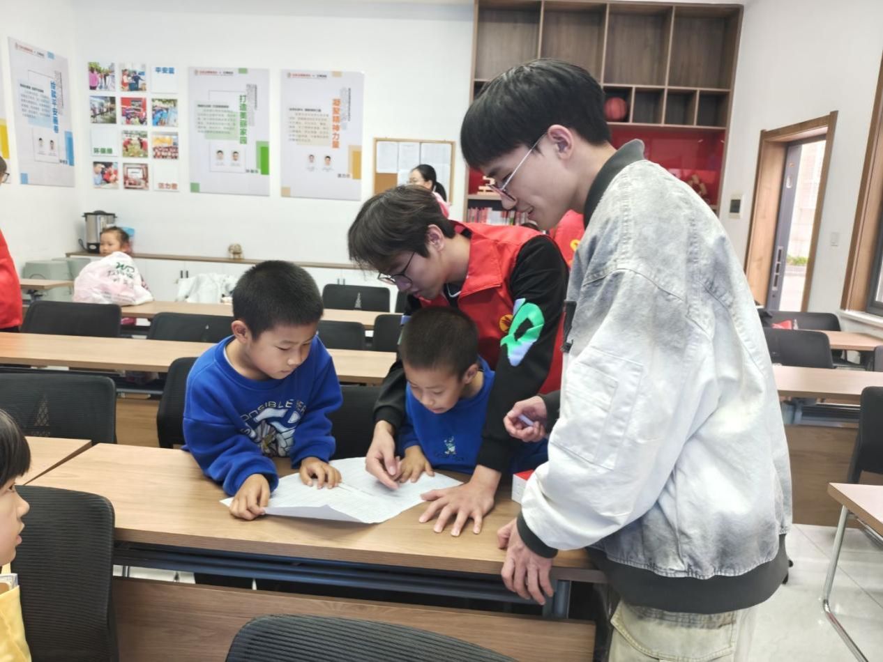 活动中,志愿者田戬担任主讲,其他成员化身“传统文化讲解员”,通过生动有趣的动画短片和通俗易懂的故事,向孩子们介绍了重阳节的来历与习俗。从“登高望远”的美好寓意,到“敬老孝亲”的中华传统,志愿者们用亲切的语言引导孩子们理解节日背后的文化内涵,在他们心中悄然播下尊敬长辈、懂得感恩的种子。宣讲结束后,志愿者们迅速投入到“一对一作业辅导”环节,耐心讲解数学题目,细致指导语文识字,用温暖的话语鼓励孩子们克服学习困难。随后的欢乐游戏时光里,儿童之家的院子洋溢着欢声笑语,夕阳余晖中,孩子们灿烂的笑容与志愿者们温柔的身影,共同构成了一幅温馨动人的画面。