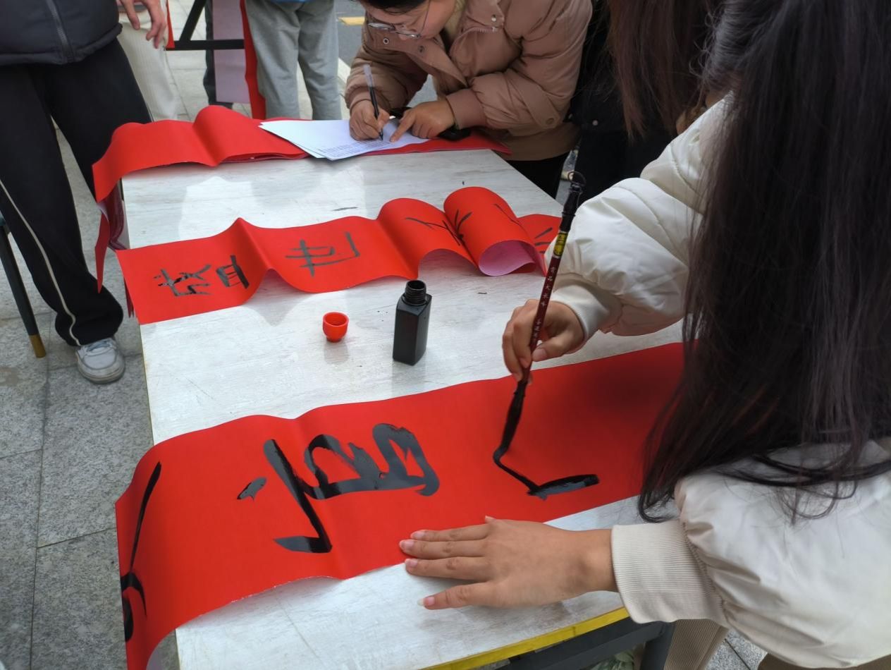 为了继承和弘扬中华优秀传统文化,营造喜庆祥和的节日氛围,经济管理学院于12月29日在北校区第八教学楼前和南校区汽车文化广场举办了“彩笔传情歌伟业,丹霞达意迎新年”写对联活动。