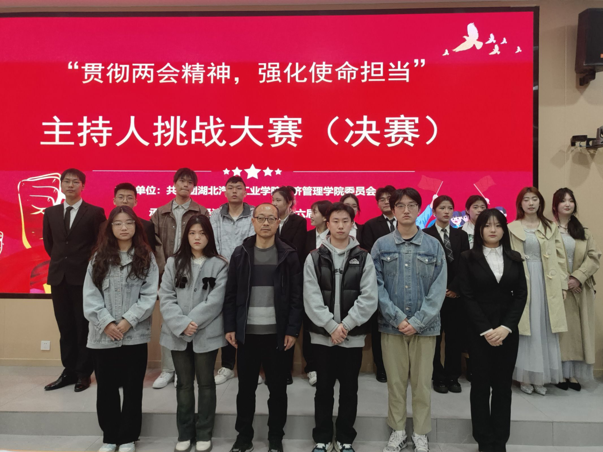 为促进校园文化发展,激励青年人砥砺前行,经济管理学院于2024年3月24日上午10:30在8106教室举办了“贯彻两会精神,强化使命担当”为主题的校园主持人挑战大赛。经济管理学院分团委书记吴文斌和150余名管院学子参与本次比赛。