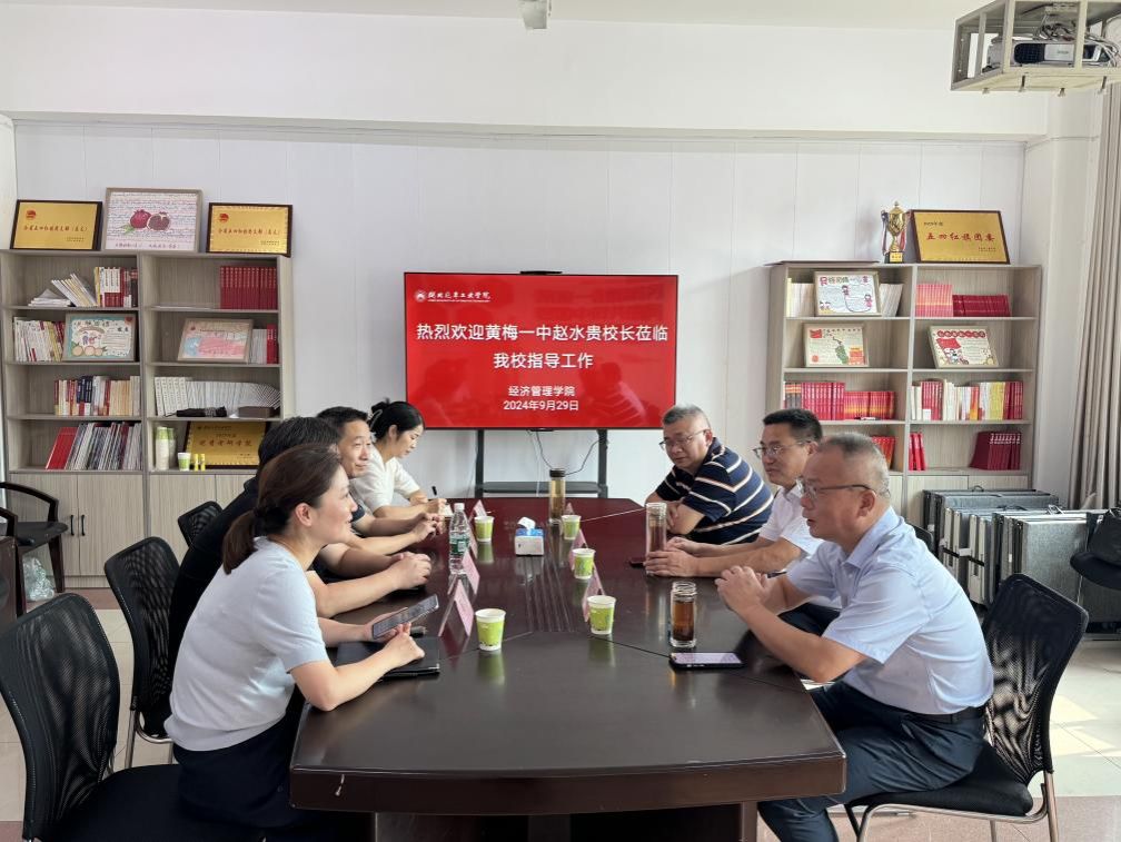 在座谈会上,经济管理学院分党委书记王礼华对黄梅一中多年来给予的支持和信任表示了衷心的感谢,并详细介绍了学校近几年的发展成就和未来规划。黄梅一中校长赵水贵表达了对学校教育教学工作的赞赏和认可,并表示将继续加强与学院的合作,为培养更多优秀人才贡献力量。双方就招生宣传、生源地建设等方面进行了深入交流。