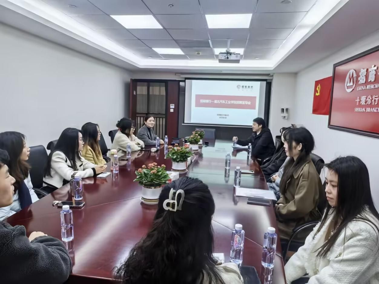 在座谈交流中,招商银行十堰支行行长赵智瑜介绍了招商银行股份有限公司十堰分行的基本情况,通过实际工作案例阐述企业的文化和品牌形象,介绍了企业人才培养体系、发展路径、薪酬福利体系、2025年校招岗位情况等;周丹代表学院感谢招行对我校毕业生的认可,双方围绕金融行业人才能力培训、学生实习就业等深入探讨交流,并邀请在行校友来校为学生开展金融行业讲座。会后,周丹一行实地参观了招商银行股份有限公司十堰分行,深度体验招行的智能服务。