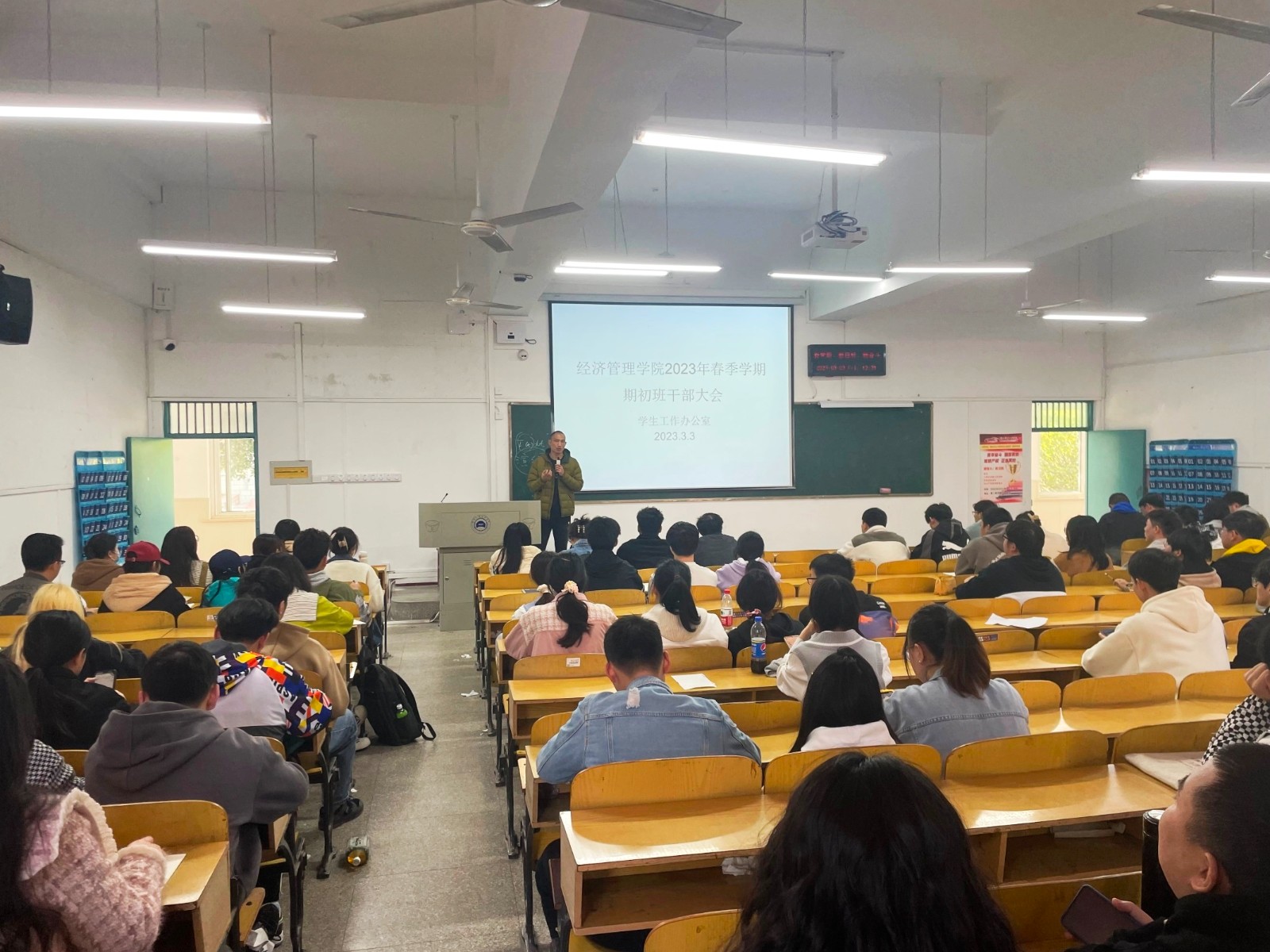 新学期伊始,为营造优良学风,提高学生干部的工作能力,3月3日中午,经济管理学院在2104教室召开2023年春季学期期初班级学生干部大会,学工办主任张朋刚和各班级班委参加了本次会议。