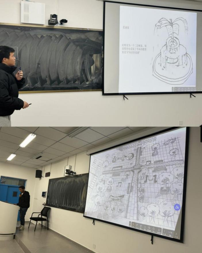 生态文旅系汪士为老师在8202教室带来了一堂别开生面的专业课暨《手绘景观制图》课程快题设计成果分享课。学生们展示了他们在“杏园宿舍”户外休闲区设计项目中的成果。