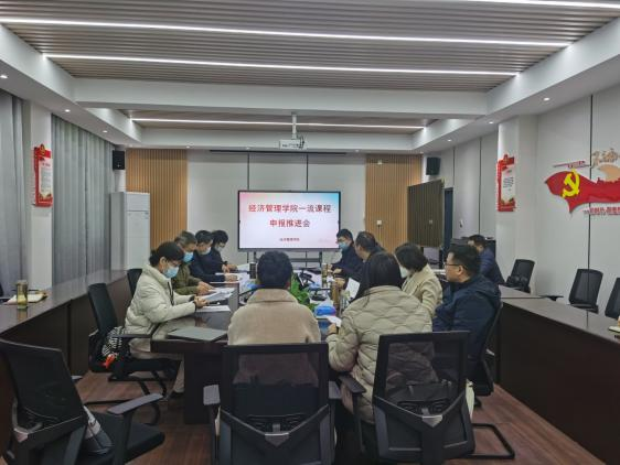 经济管理学院在四教五楼会议室举行了国家级一流本科课程申报推进会,邀请学校督导组组长毛高波教授、宋萍萍教授、汽车工程学院郝琪教授、经济管理学院杨立君教授为评审专家,管理学院院长殷旅江及院内国一流、省一流、校一流课程团队参加了会议。