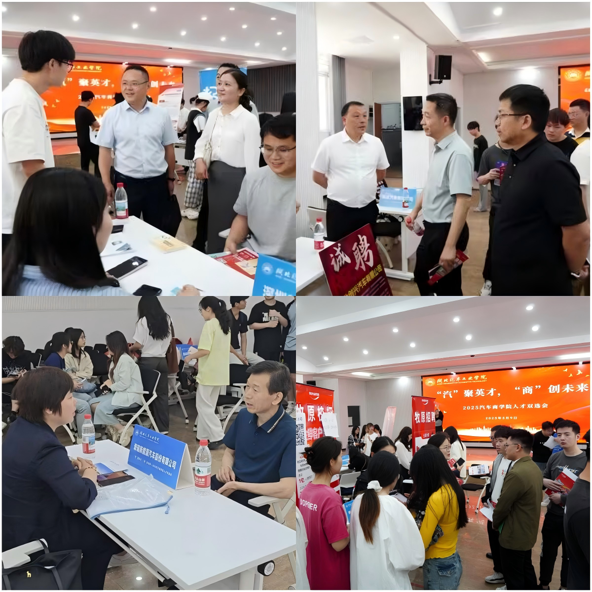 三、毕业服务精准到位,全流程保障学生顺利离校就业。毕业生年级大会明确毕业与安全要求,5 月 14 日召开 2025 届毕业生年级大会,辅导员解读毕业条件、毕业设计规范及安全注意事项,提醒防范电信诈骗;陈欢老师讲解就业手续与政策;向丹老师梳理档案与党组织关系转接流程;屈田田老师说明助学贷款还款事项。会议为毕业生提供全流程指导,助力顺利毕业。就业与升学指导强化服务实效,结合 “学海领航” 活动,学院针对毕业生开展个性化就业指导,分析就业形势,解答政策疑问,鼓励基层就业与升学深造。通过一对一咨询、简历优化等服务,提升毕业生就业竞争力。5月9日上午,太阳集团网站8722在5101报告厅成功举行“汽”聚英才·“商”创未来--2025太阳集团网站8722人才双选会。招聘会汇聚深圳慧通商务有限公司、湖北顺丰速运有限公司、牧原食品股份有限公司、湖北京邦达供应链科技有限公司等25家优质企业,提供1200余个就业岗位,覆盖管理大类、机械类、自动化类、材料类等多个领域,现场求职氛围浓厚。参会领导和各招聘企业负责人深入交流,了解行业用人需求和趋势,推进校企合作进程。