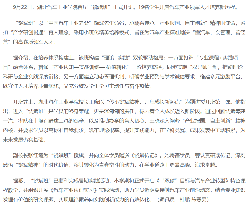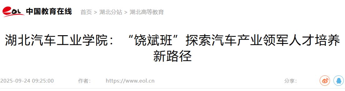 【中国教育新闻网】湖北汽院:“饶斌班”探索汽车产业领军人才培养新路径