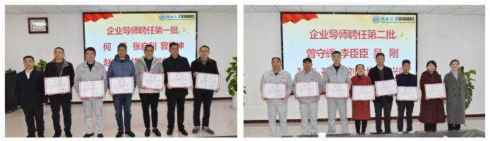 孟光副处长和周丹副书记为到场的 13 位企业导师颁发聘书。这支核心导师团均具备深厚行业积淀,包括东风物流(襄阳)有限公司高级经济师何平、十堰万博物流有限公司副总经理曾显坤、东风越野车有限公司质量首席赵臣忠、湖北人杰特种汽车科技有限公司总经理张自利、东风汽车零部件 (集团) 有限公司刃量具分公司人事部长付新波等汽车业界精英,将结合自身专业领域为学生提供全方位支持。企业导师代表何平发言表示,将分享实战经验与行业洞察,把真实产业案例融入指导,助力学生打通理论与实践壁垒。